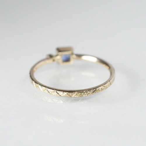 K10 ブルーサファイアとダイヤモンドの和彫りのリング