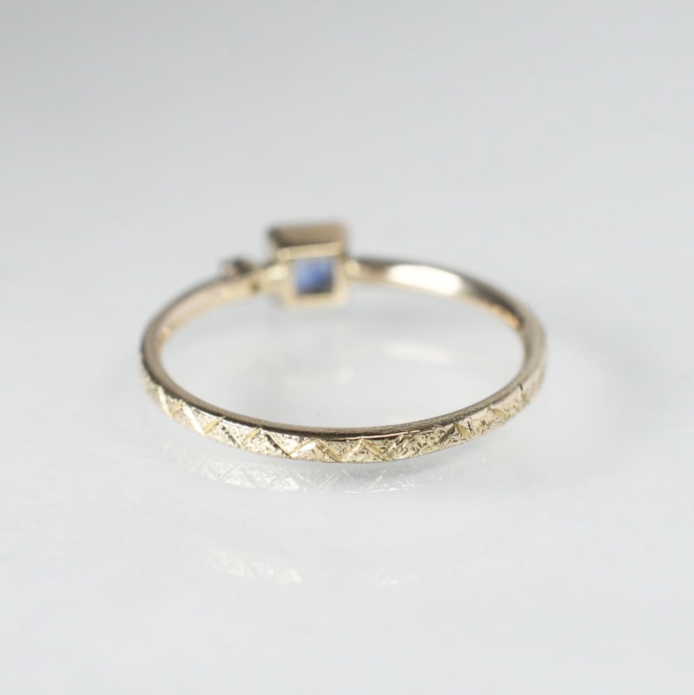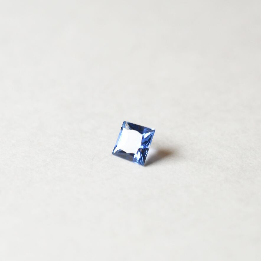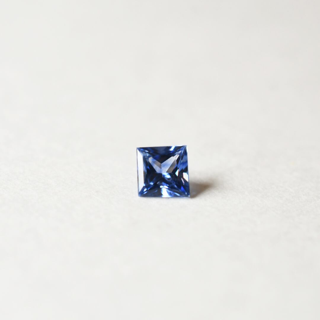 プリンセスカットのブルーサファイアをフクリン留めで留めました。