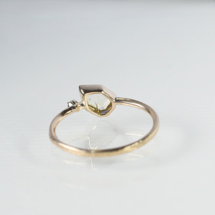 ファンシーカットのナチュラルイエローダイヤモンドをフクリン留めで留めました。