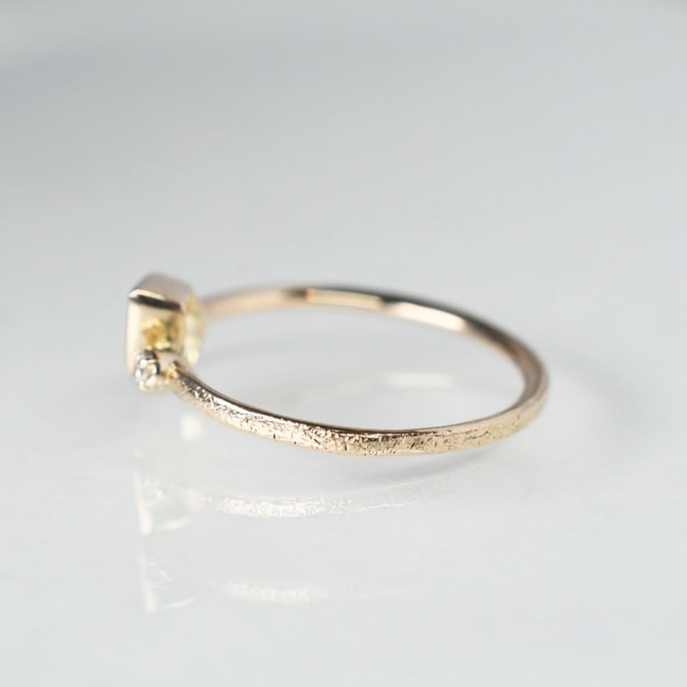 隣にはちょこんとした丸い爪でメレダイヤモンドを留めています。